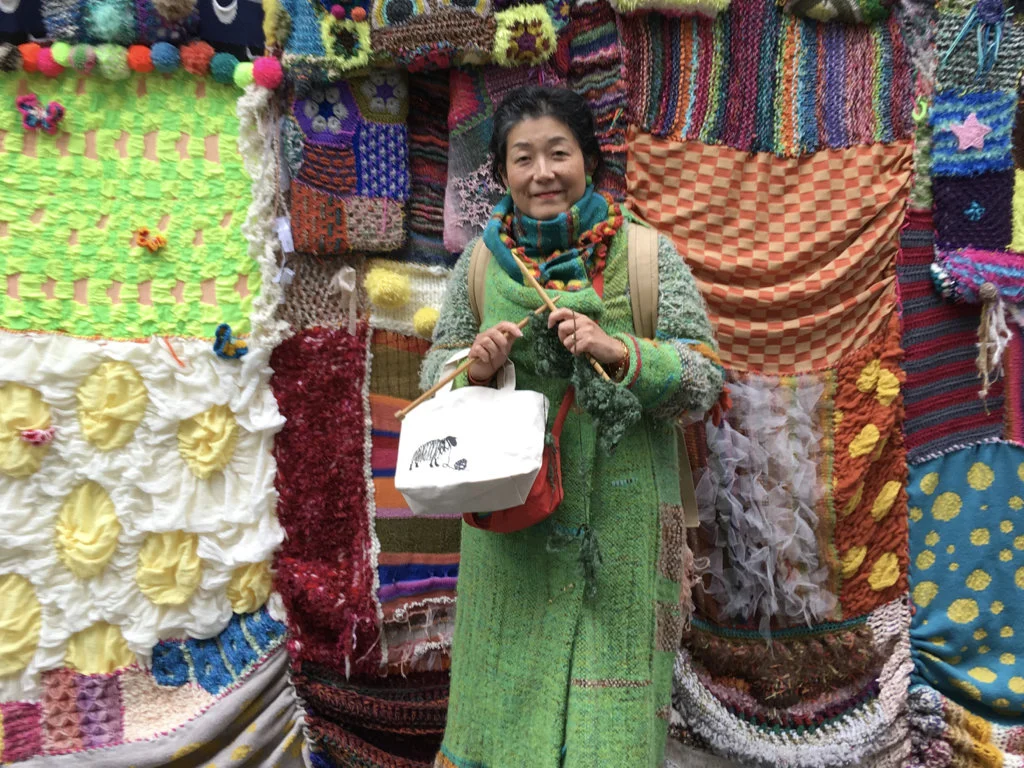Yumiko Wakatsuki is an artist who takes a free-form style of SAORI weaving that follows one's emotions rather than planning. She consults to identify colors that compliment clients' skin, eyes, and hair, recommending these true colors in their weaving.